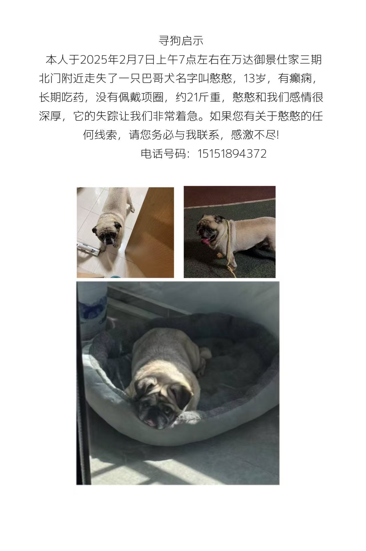 宠物 求助 有没有好心人看到这只巴哥 帮助找到的可以酬谢,狗狗是我的家人,很着急