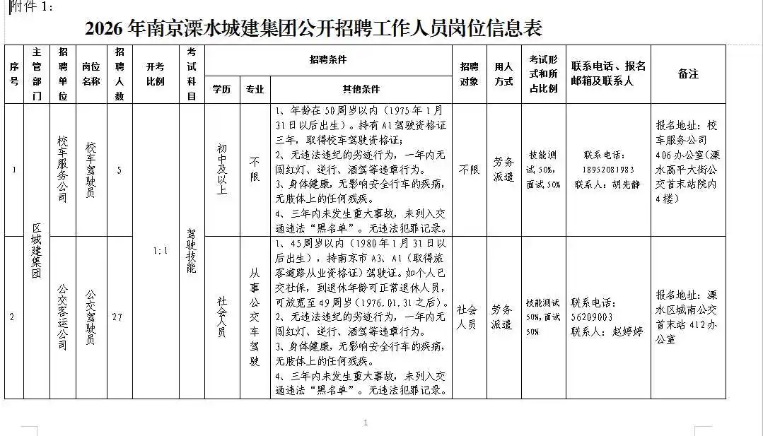 【城建集团】2026年南京溧水城市建设集团有限公司 公开招聘工作人员公告