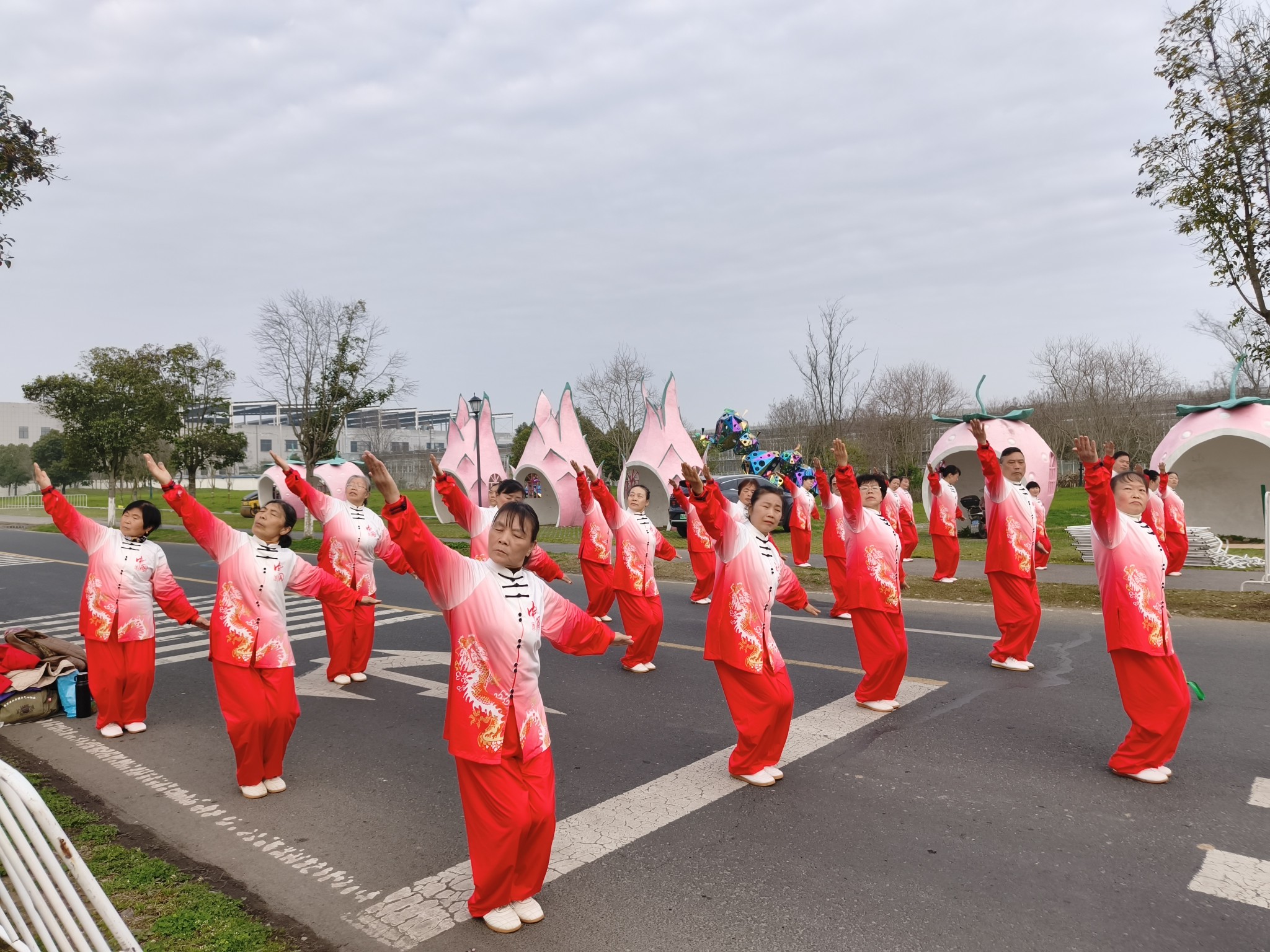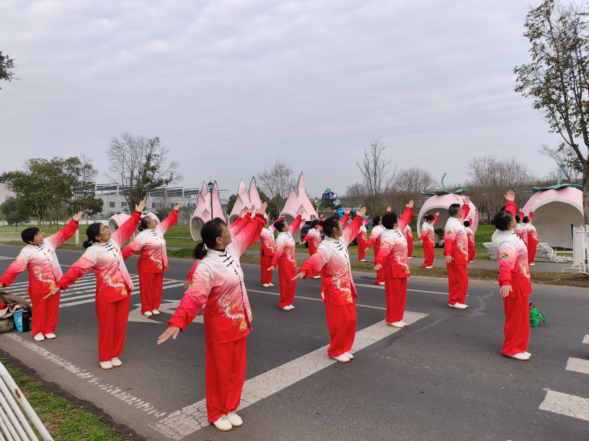 溧水健身气功协会近30名骨干 激情助威溧水马拉松